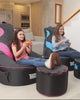 These gaming bean bags are double stitched for strength and also lab tested for durability. Unfortunately the lab doesn't give us a recommended maximum capacity as there are variables that come into play, but as I guide, we'd recommend up to 115kg under normal use of the bean bag (so that's just sitting in it). If you're jumping into it like a water bomber into the pool, it's not really made for that and it would void the warranty, but they are really strong and durable.